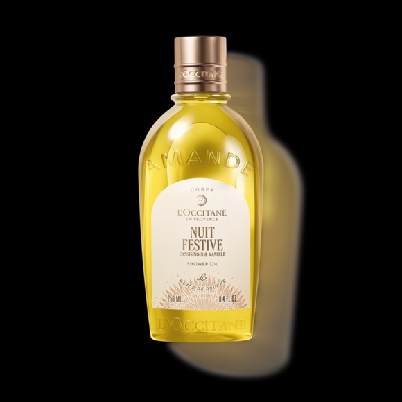 Nuit Festive Shower Oil cleanses the skin and helps moisturize even dry skin, and unveils a dazzling blackcurrant fragrance, combined with sweet vanilla notes, that conveys a wonderful winter night.