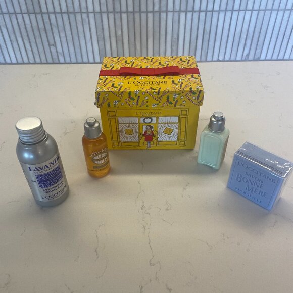 L'Occitane Yellow Holiday Gift Set with Travel Size Toiletries, NWT