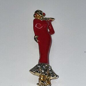 L’Officiel Italy Laura Fabbri Red Enamel Crystal Woman in Gown Brooch Pin