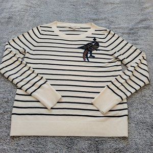 Loft Womens Sweater Small Blue White Peacock Wool Blend Sequin Stripe Boho 16163