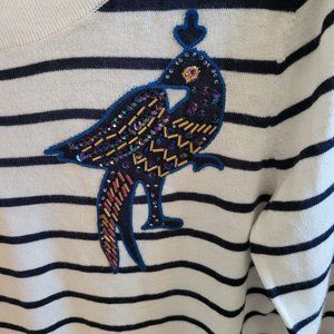 LOft Womens Sweater Small Blue White Peacock Wool Blend Sequin Stripe Boho 16163