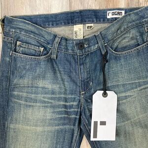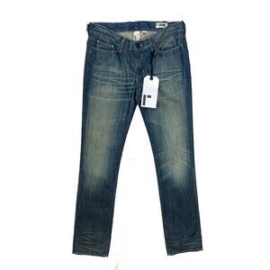 L'Ogan 28 (33) Dark Wash Slim Rogan Jeans Straight Leg Light Distress Mid Rise