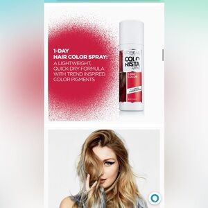 L'Oreal Paris Colorista Spray lets you play with color in a whole new way! A temporary hair color spray that allows you to instantly get bold looks when you want them and how you want them without the commitment - This color spray for hair is out after 1 day and is kind to your hair.