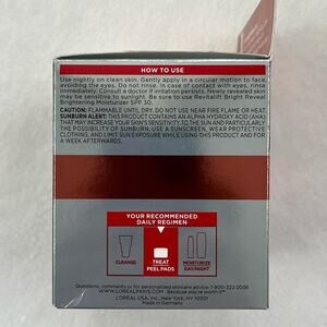 L'Oreal Revitalift Bright Reveal Brightening Peel Pads, 30 Pads. Peels away dull, uneven tone, reveals brighter skin, reduces wrinkles, 10% glycolic complex. Dermatologist tested for safety. Suitable for all skin types.