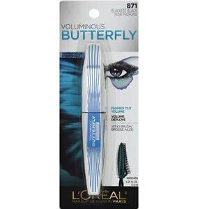 L'Oreal Voluminous Butterfly Mascara provides fanned out volume, featuring a breakthrough wing brush to lengthen, stretch and volumize every lash.