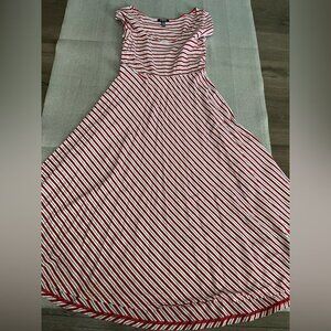 [LP] Chaps Red and White Cap Sleeve Maxi Dress