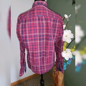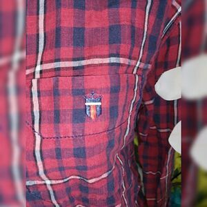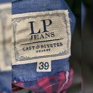 LP Jeans Flip Cuff Shirt Large Red Cotton Linen Plaid Button