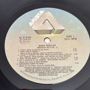 LP Vinyl Barry Manilow Greatest Hits Volume II with Dust Cover and Sleeve