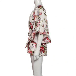 Anthropologie LPA Off Shoulder Romper Cream Floral Rose Summer Bouquet Women’s Size XS