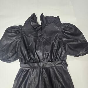 Faux leather fabric with puff sleeves