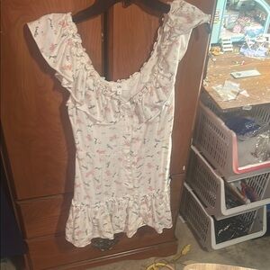 LPA Cream Ruffled Peplum Cap Sleeve Blouse