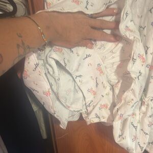 Experience the perfect blend of elegance and comfort with this LPA blouse, featuring a cream hue and delicate ruffled cap sleeves. The fitted peplum design adds a touch of sophistication, making it an ideal choice for intimate and sleepwear occasions. Crafted with attention to detail, this blouse offers a stylish and cozy option for your nighttime wardrobe.it has seen in panties that are super cute on the butt!