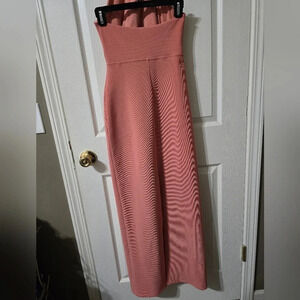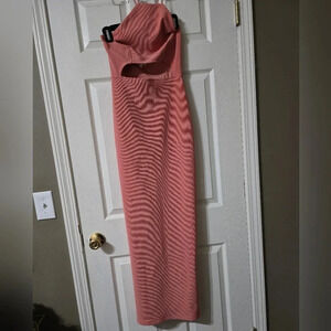 LPA Dress 128 in Blush Pink, Ribbed Halter Bodycon Maxi Dress w/ Front Cut-Out.