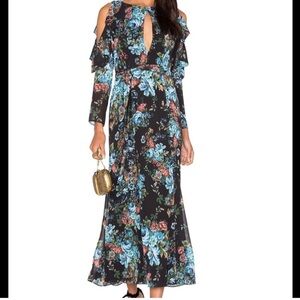 LPA Floral Maxi Ruffle Black & Blue Dress Size Small