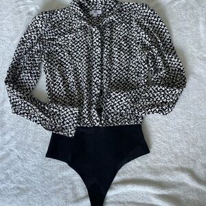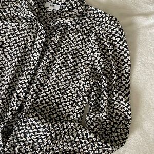 Elegant button-down with a striking black and white pattern. Perfect for a chic look.