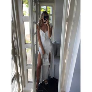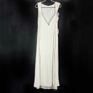 LPA Gabriella Eyelet Maxi Dress Ivory White V-Neck Side Slits Sleeveless Sz M