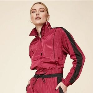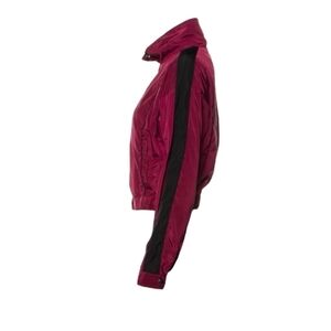 LPA Gianni cropped lightweight jacket in vibrant pink fuschia color with black trim and stripe down the sleeves and pop up collar. Excellent condition.