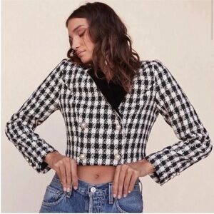 LPA Mesalina Houndstooth Pearl Cropped Blazer