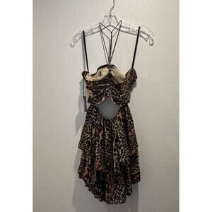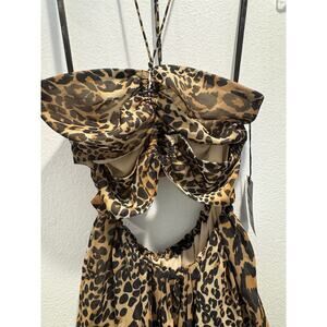 LPA Mini Dress Women’s Size Small Kirby Print Ruffle Halter Safari Lillia Leo
