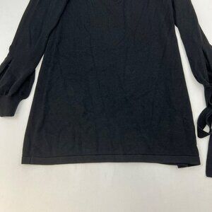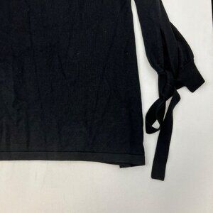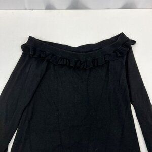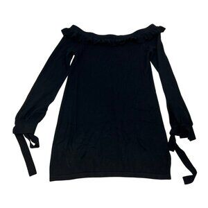 LPA Off Shoulder Sweater Dress Ruffle Neck Tie Cuff Black Size Large Wool Blend