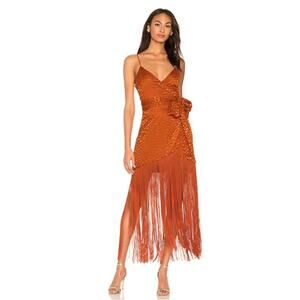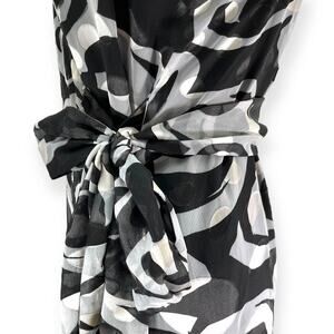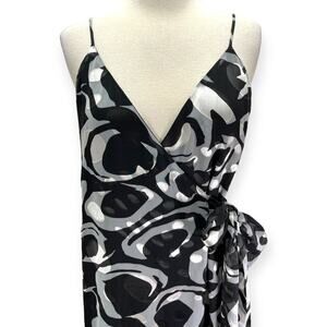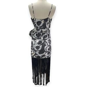 LPA Orelia Chiffon Abstract Fringe Hem Wrap Dress Black Women's Size Small