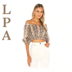 LPA Rara Top in Tan Snake Print Off-The-Shoulder‎ Crop Top size S