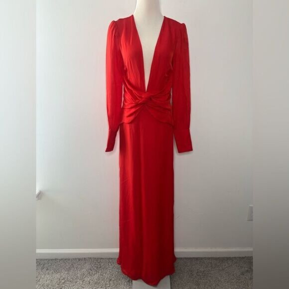 LPA Red Plunge Maxi Dress S