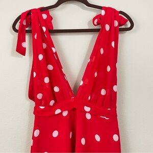 LPA Red Polla Dot Tie Shoulders Georgette Mini Dress Size Medium