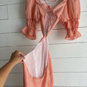 LPA Revolve EDITH DRESS IN ORANGE HOUNDSTOOTH Medium MIDI