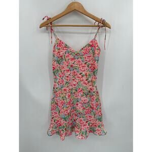 LPA Revolve Multi Ruffle Floral Mini Dress V Neckline Tie Shoulders Size Small