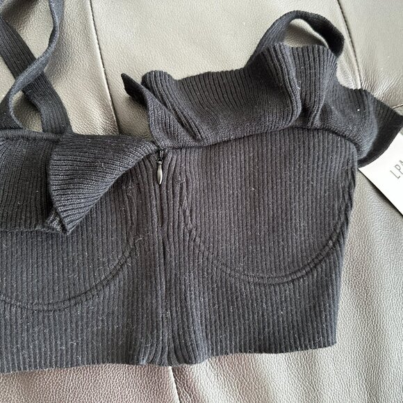 LPA Revolve Rib Knit Ruffle Crop Top