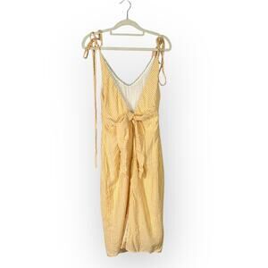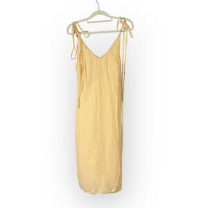 LPA Tank Dress Women's XS Yellow Ivory Striped Strappy Tie Back Slit Knee Length
