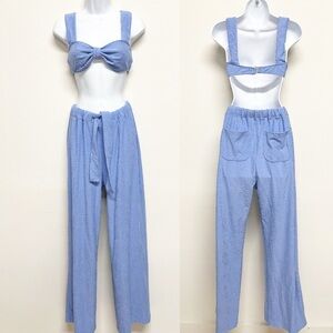 LPA Womens Periwinkle Patterned Terrycloth Giorgia Top and Pant Coord Set Top Medium /Pant Small