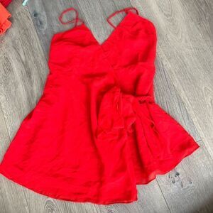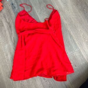 100% poly. Hand wash cold. Fully lined. Wrap design with tie closure. Adjustable shoulder straps. Revolve Style No. LPAR-WD175. Manufacturer Style No. LPD46 S18.