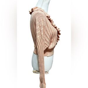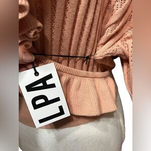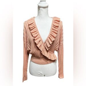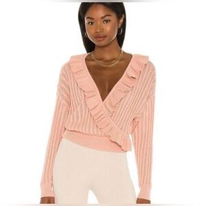 LPA Ava Wrap Sweater Baby Pink Size S /60% viscose 40% cotton/ Surplice front with ruffle trim /Rib knit fabric with perforated detail