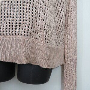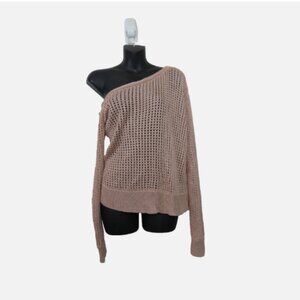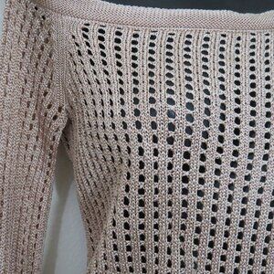 LPA size Small Off the Shoulder Sweater Leo Crochet Bronze Open Knit Long Sleeve