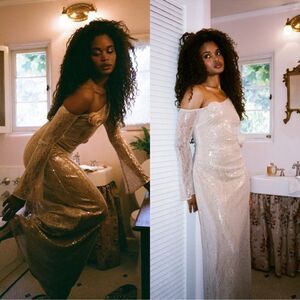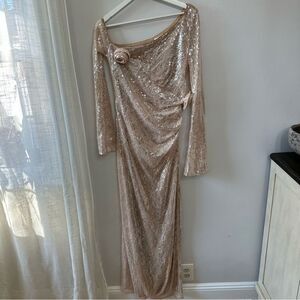 Shine in this elegant sequin one-shoulder dress. Perfect for special occasions, this cream dress offers a sophisticated and glamorous look.