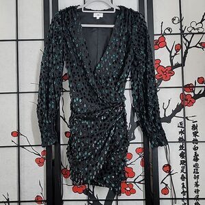 LPA Brett Long Sleeve Mini Dress in Emerald & Black