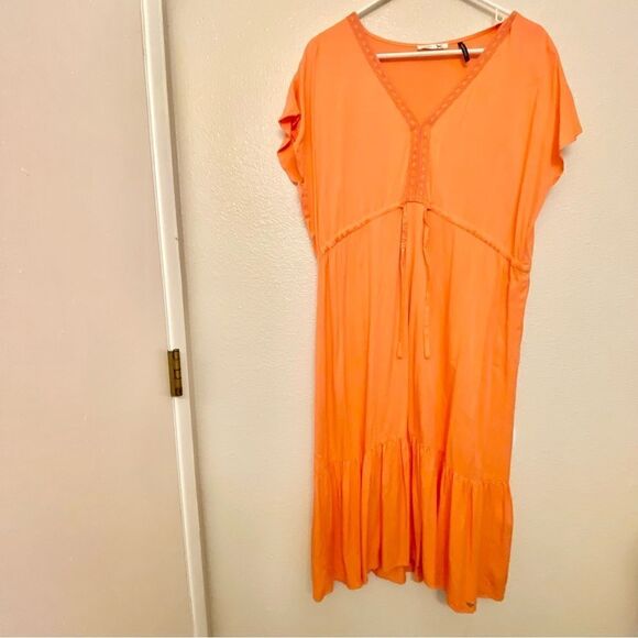 LPB LES PETITES BOMBES French orange romantic summer tiered midi ruffle dress L