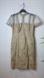 Lopez Knudsen | Beautiful Gold Tan Lace Crochet Ribbon Mesh Metallic Midi Cocktail Dress