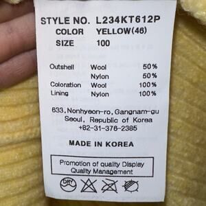 LPGA Yellow Wool Blend Sponsored Golf Pullover Sweater Korean Size 100 = roughly Size Medium based on research & measurements but please review measurements for best fit. Would probably fit a Large as well