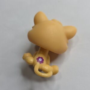 Adorable tan cat figurine with a purple flower detail. Perfect for collectors.