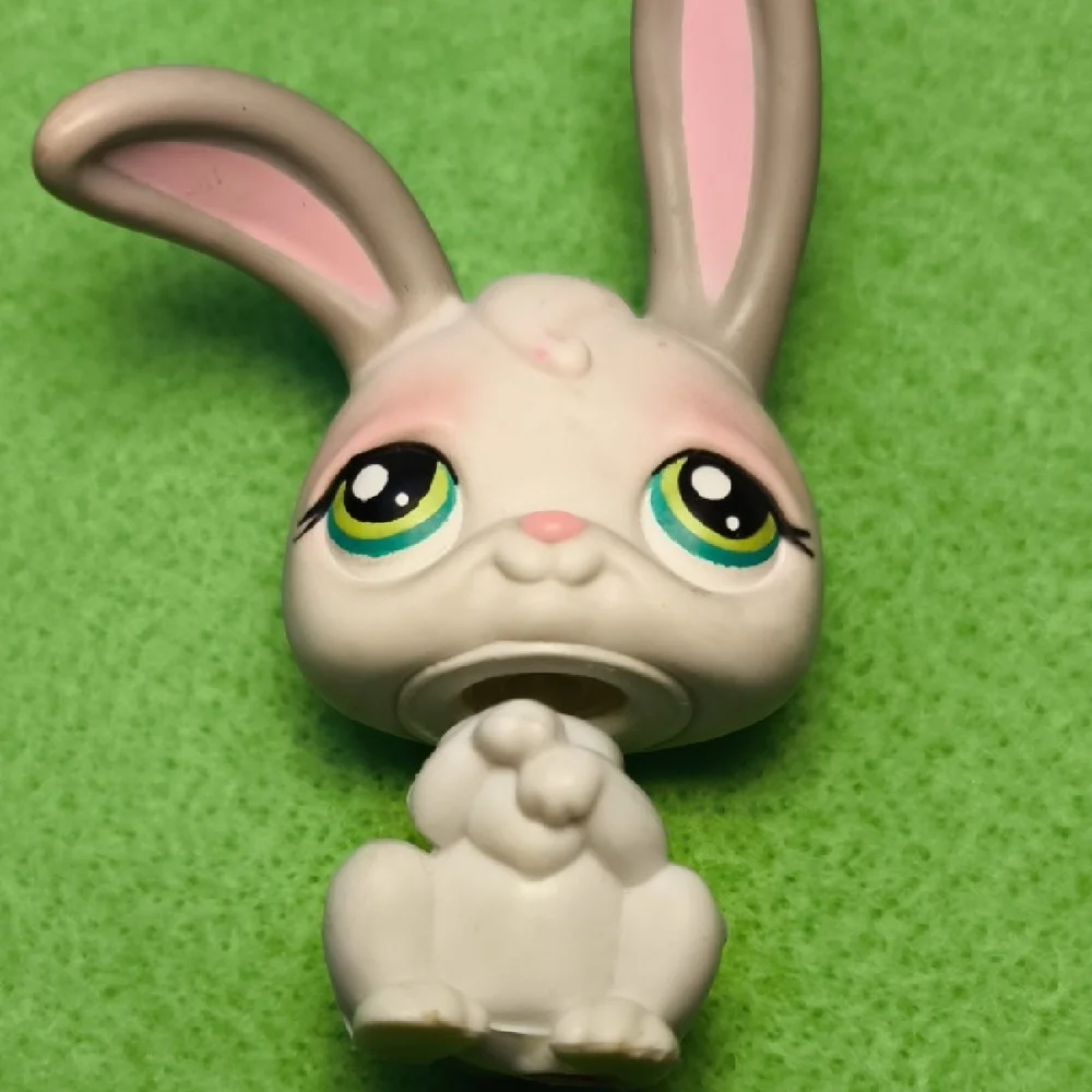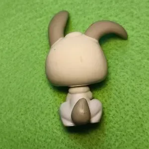 LPS #14 White Bunny Rabbit. Gray Ears. Green Eyes. One upright and one floppy ear. 2.25" tall. I have about 50 Littlest Pet Shop Animals to list. Bundle for big discount!