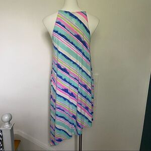 Good used condition, there are a few tiny spots on the fabric but the pattern on the dress makes them very hard to notice. Runs large.