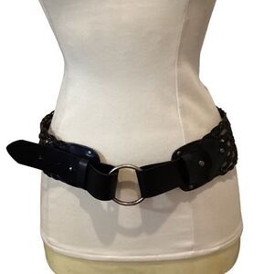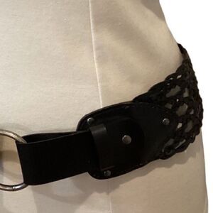 LP by Linea Pelle Vegan Black Woven Belt Faux Leather Large