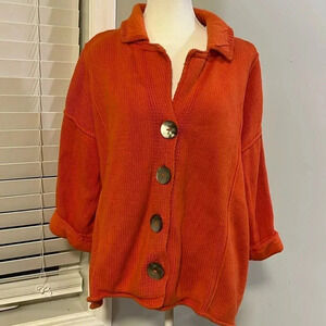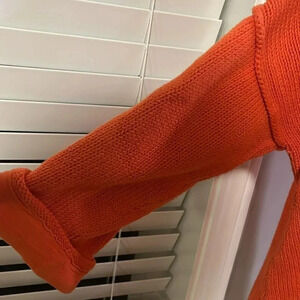 [L]Pure HandKnit orange Drop Shoulder SS Cotton Button Down Sweater