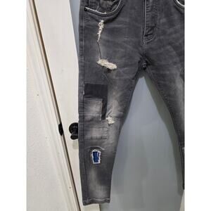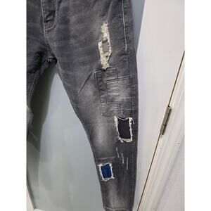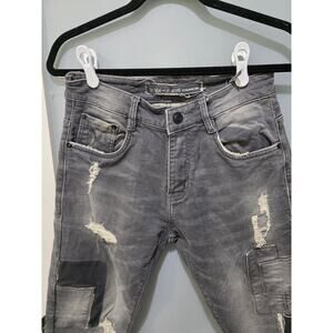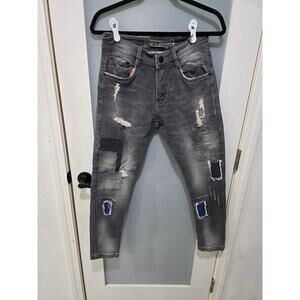 LR Fang Distressed Patch Jeans Gray 30 Slim Tapered Moto Streetwear