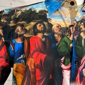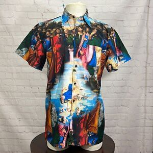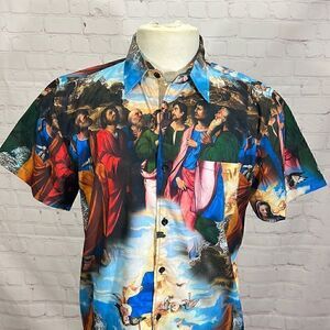 L REASON BRAND Renaissance Print Button short sleeve down shirt nwt