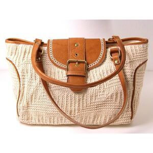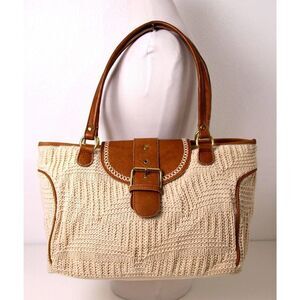 LRG BONFANTI NATURAL KNIT COTTON BROWN GENUINE LEATHER SHOULDER BAG HANDBAG HOBO