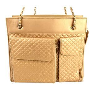 LRG Evan-Picone QUILTED GOLD FAUX LEATHER ORGANIZER CHAIN SHOULDER BAG HANDBAG